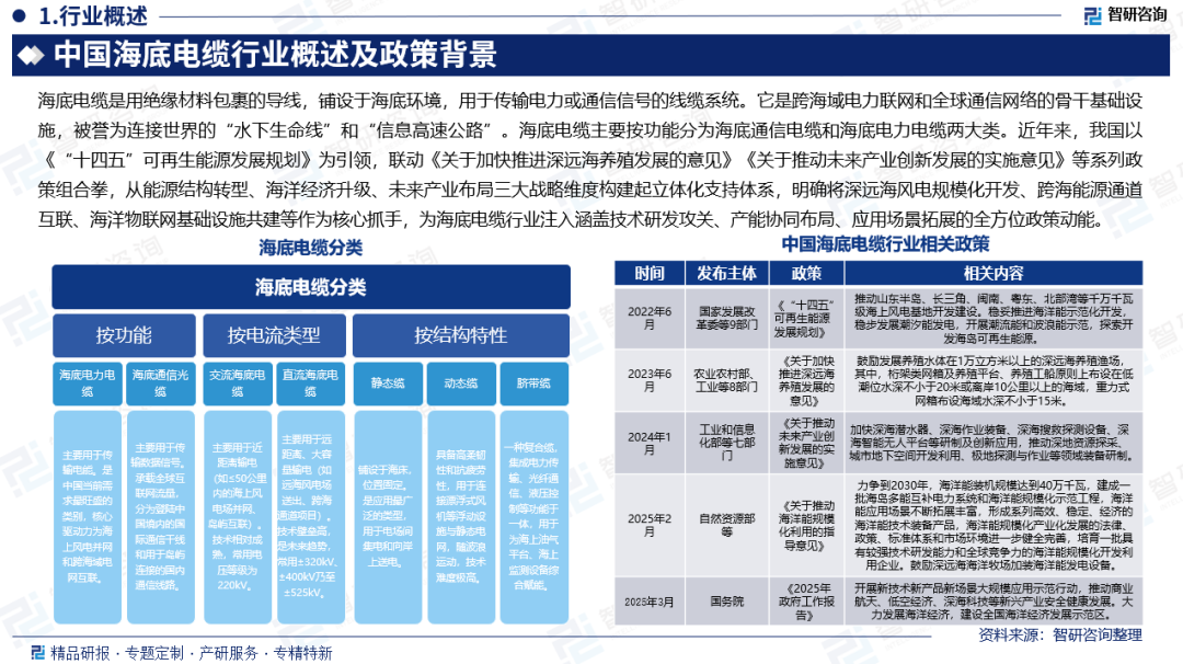 基于此,依托智研咨询旗下海底电缆行业研究团队深厚的市场洞察力,并结合多年调研数据与一线实战需求,智研咨询推出《2025-2031年中国海底电缆行业市场发展形势及投资机会研判报告》。本报告立足海底电缆新视角,聚焦行业核心议题——变化趋势(怎么变)、用户需求(要什么)、投放选择(投向哪)、运营方法(如何投)及实践案例(看一看),期待携手行业伙伴,共谋行业发展新格局、新机遇,推动海底电缆行业发展。