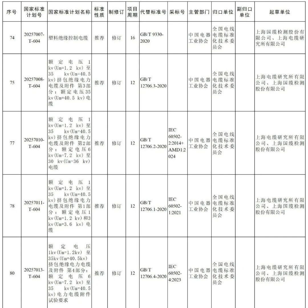 12706、9330、19666等电缆标准将进行修订改版!